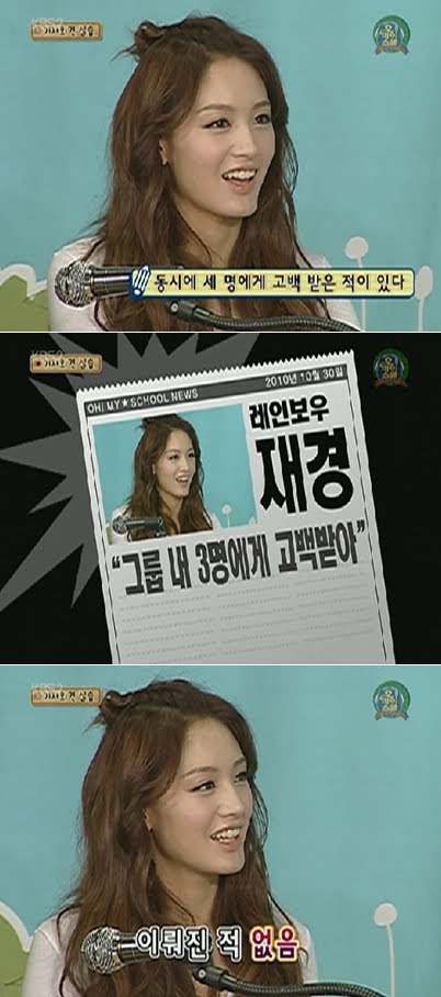 On the 30th of October, through KBS 2TV 'Oh! My School' mock news feedback, Jaekyung has said her own secret in front of the reporters.
