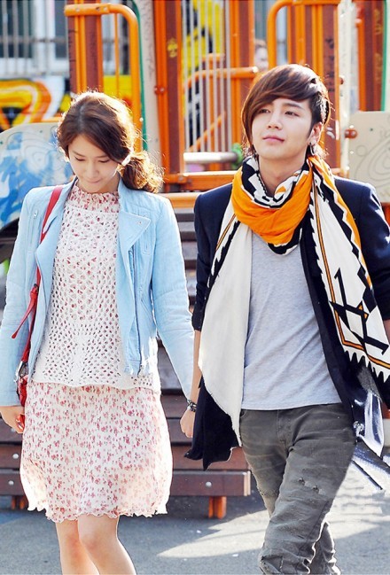 The KBS’s “Love Rain” released the photos of Jang Geun Suk and Girls’ Generation member Im YoonA enjoying their dating at the busy street of Hongdae area.