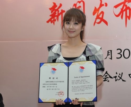 Jang, 29, was appointed a professor teaching students at the Department of Theater and Film in Beijing Huajia University in a ceremony on June 30.