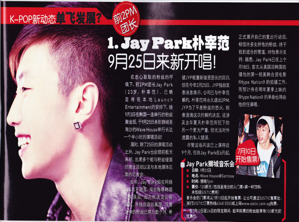 To all of you Singaporean Jaywalkers! Good news has arrived! Jay Park will be coming down to Singapore on the 25th of September for a showcase. This will be his 2nd visit to Singapore, but this time, as Park Jaebum and not as a member of 2pm.