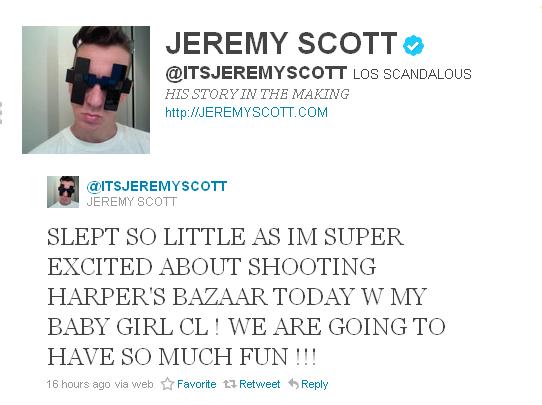 After the two hanged out yesterday at the fashion show, Jeremy Scott just tweeted that he and 2ne1's CL will be shooting for fashion magazine Harper's Bazaar together! This isn't the first time that 2ne1 and Jeremy Scott are shooting for a fashion magazine together, but this is the first time member CL and Jeremy Scott will be shooting together.