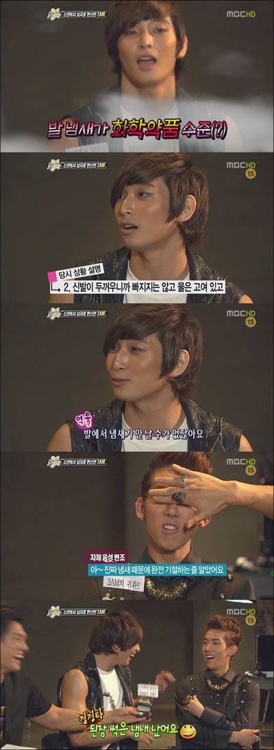 Jung Jinwoon's related searched came up as 'smelly feet'. Jung Jinwoon said "At the time a lot of attention went to my thick shoes", "I had been practicing a lot, I couldn't help it."