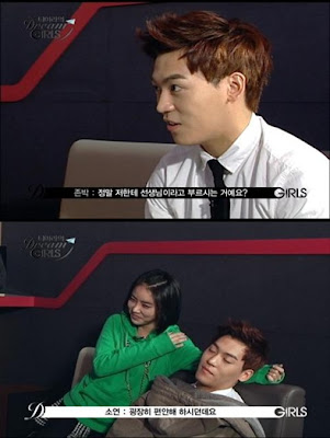 Superstar K 2's John Park helps T-ara with their english.