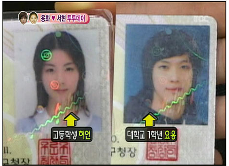During the latest 'We got married" , Their ID photo has been released! Natural beauty evidence. In the photo, Seohyun was wearing blue school uniform , long straight hair. University photo of Yonghwa invariably present handsome good looks with baby fat. The other MC will also impressed by their photos!