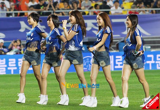 The popular girl group Kara, who is currently busy in Japan, kicked off the baseball match between Soowon Samsung and Seoul FC, held in Soowon World Cup Stadium at 7:30 pm 28 August.