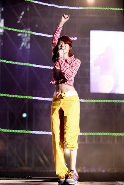 Seungyeon is seen packing unexpected abs, peeking through her shirt. Fan were surprised as the star's body is exactly the opposite of her adorable and baby faced image.