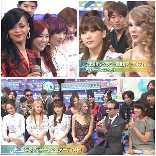 On April 12th, screen captures featuring KARA, Rihanna and Taylor Swift on a Japanese show were posted on an online community board. The pictures show KARA members sitting alongside world famous stars, Rihanna and Taylor Swift.