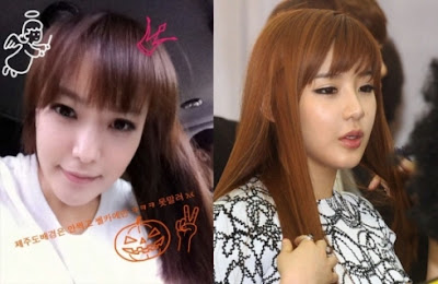 Netizens noticed a slight difference since she didn’t have any bangs before marriage, but also noticed that she looked younger with them especially since her skin looked so white. In addition, some even bought up girl group 2NE1′s member Park Bom as they found that there was a resemblance as they both had bangs, and white skin plus a round face and eyes. The firm nose of both also gained attention as they kept comparing the two ladies.