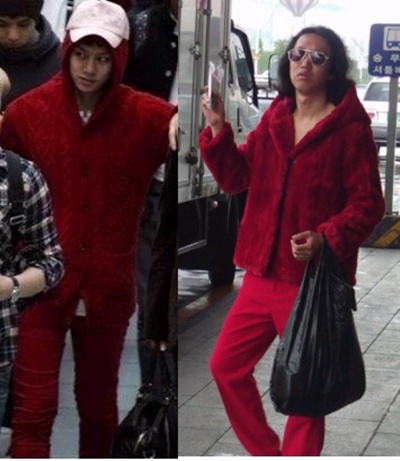 In the photo, one side is Kim Heechul and the other side is Kim Kyungjin. The two men dressed funnily in bright red, causing the netizens to burst into laughter.