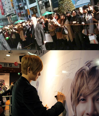 The surprise event consisted of music video screenings, photo exhibition and also a brief meeting with the fans. The surprise event was just short and the weather was severely cold but still fans gathered at the stores so they can show their support to Kim Hyun Joong and also to see him. The staff wasnt also expecting that many to come due to it being unannounced and also because of the weather but the fans did no disappoint and was enthusiastic the whole time. Fans flooded the store and even the streets.