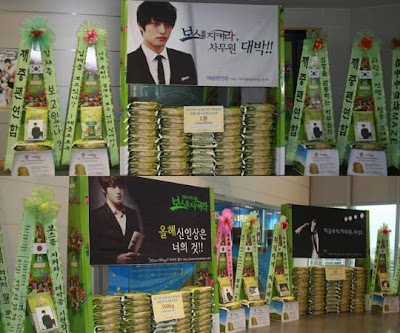 The 7 tons of rice wreaths that JYJ’s Kim Jaejong has donated are the Kim Jaejoong Support Dreamie Rice Wreaths that the fandoms of 28 countries such as Korea, the USA, Great Britain, China, Japan, France, Italy, Spain, Peru, Qatar, and Ukraine have sent to the Production Presentation Conference for the SBS drama Protect the Boss in July to wish its success.