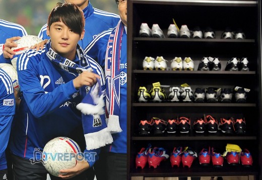 Group JYJ’s Kim Junsu showed off his devoted (?) love for soccer shoes.