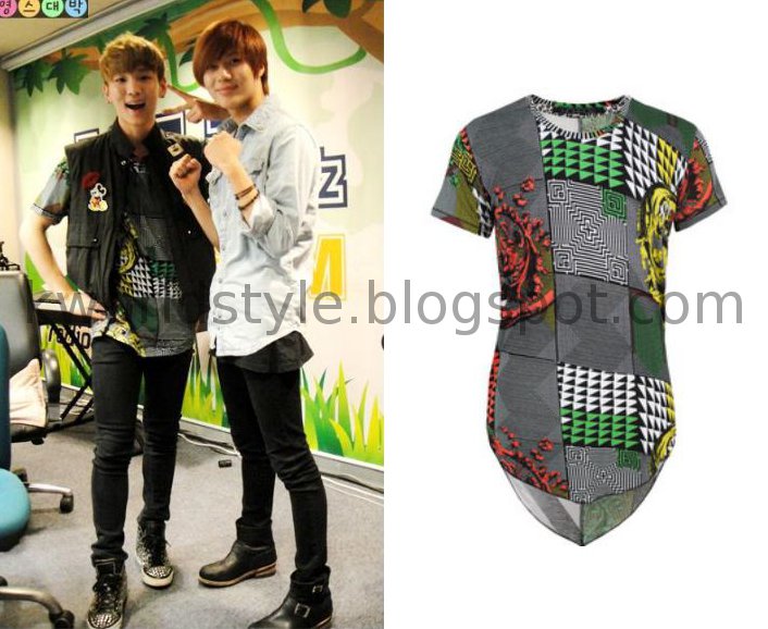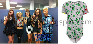 At a performance of Pinocchio on M. Countdown, f(x)'s Luna wore Horace's Multi Animal Splat print.I cannot find the exact shirt, and it's highly possible that f(x)'s stylists did some DIYing of their own.