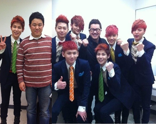 On March 23rd, HanByul said thru his personal twitter, “Kim GuRa sunbaenim, Ji SangRyul sunbaenim, thank you so much. I’ll do my best in the future”. The two photos with Kim Gura and Ji Sangryul were from the episode of the group’s guesting at MBC SeBaKwi.