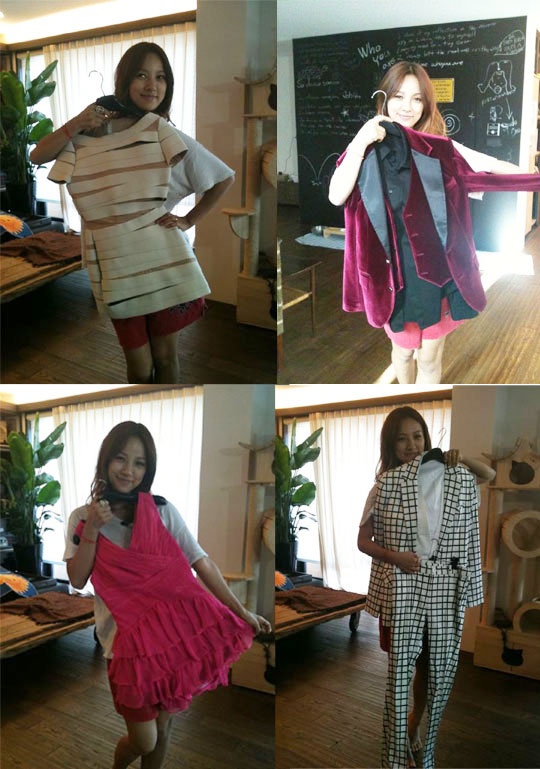 Lee Hyori tweeted, "Idol donation bazaar! U-Know Yunho's stage suit, Suzy's bandage dress, Troublemaker Hyunseung and HyunA's stage attire - thank you~"