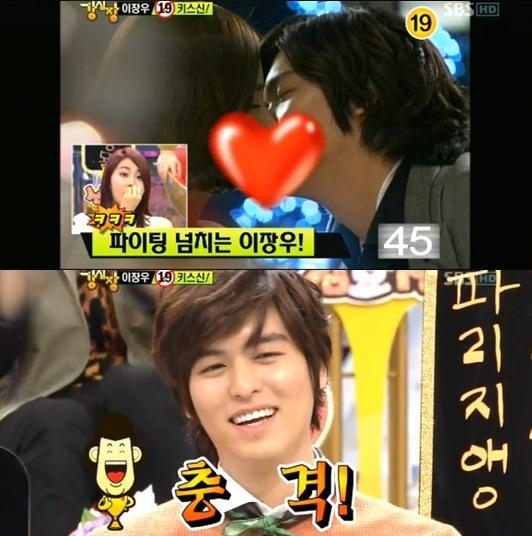 Lee Jang Woo appeared on the SBS TV program "Strong Heart" aired on March 13th and said "I always had discontent watching the kiss scenes on dramas. I think a kiss scene should be a real kiss and not just a peck", as he reminisced the kiss with Park Min Young in the drama "Glorious Jane".