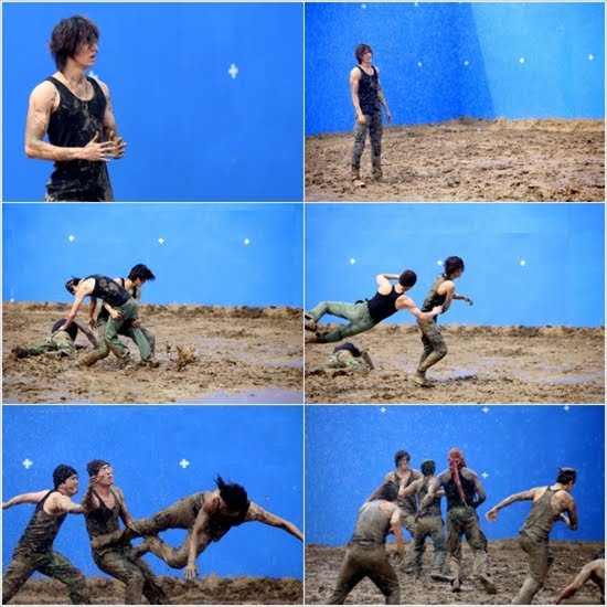 He showed perfect action with no NG's in the rain without using a stand-in as well. He kicked well in the mud that was difficult to even stand in and showed perfect face acting although his face was hard to read as it was covered in mud.