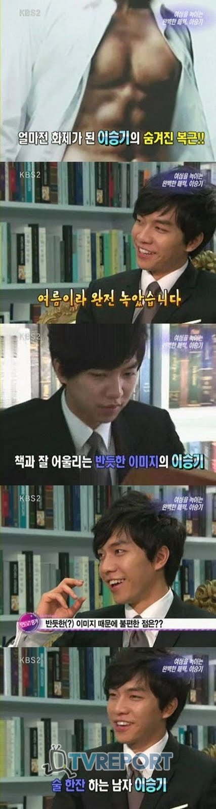 Lee Seung Gi also revealed, "The chocolate abs were a burden, I cannot seem to fit the image of having chocolate abs". And when he was asked to show his "chocolate abs" all he said was, "Because it's summer it has melted away completely" he laughed.