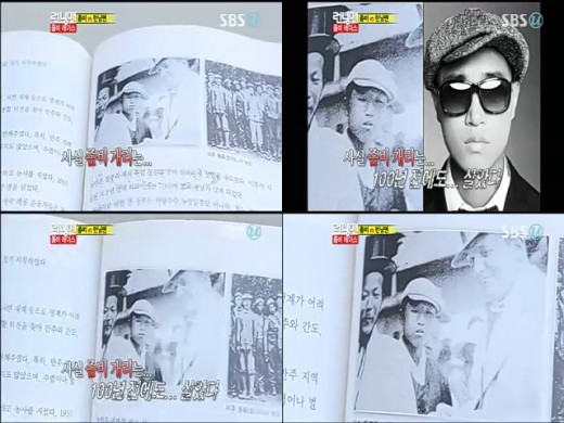 On the book, he saw a boy who looked similar to him but that time the picture was taken was a hundred years ago. If you compare the boy to his picture you can see the striking resemblance between the two. The similarity of the two caused much laughter in the set. Pretty interesting right?