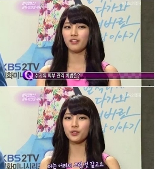 When asked what her secret is to her beautiful flawless skin, Suzy of Miss A gives a simple and short answer. On the 3rd of June broadcast of KBS "Entertainment Tonight", Suzy of Miss A was asked what her skin care secret is.