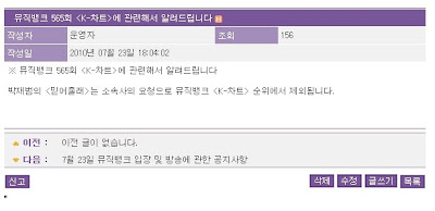 [NEWS] Music Bank posts up announcement on Jay's exclusion from K-Chart jay parkMalekJul 23, 2010 Share 0 comments Music Bank's 565th NotificationPark Jaebum's has been excluded from the rankings by request of his company.CREDITS : KBS MUSIC BANK (SOURCE); hazyfiasco@2ONEDAY.COM (TRANS) Tags: Jay park, Music bank Share Previous articleNext article Leave a comment Name Email Content Post comment