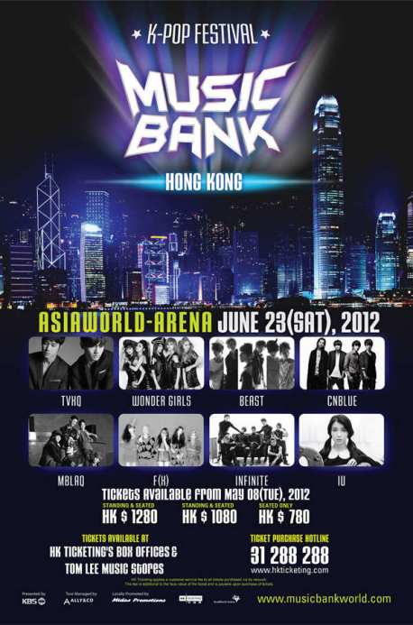 K-pop fans should not miss this one-night only show. Presented by Korean Broadcasting System and promoted in Hong Kong by Midas Promotions, Music Bank in Hong Kong 2012 will storm the stage of AsiaWorld-Arena on 23 June 2012. Tickets to the show are on sale through HK Ticketing and Tom Lee Music Stores from 8 May 2012.