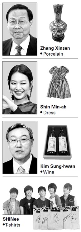 Park Jun-seo, former justice of the Supreme Court, donated a ceramic with a figure of a peacock carved into the ceramic. Shin Gak-su, the first vice minister for Ministry of Foreign Affairs and Trade sent a silver plate made in India. A rare tie made by the late Korean-American video artist Paik Nam-june was sent by Lee Je-hak, leader of Yangcheon District, Seoul.