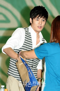 Kim Hyun Joong holding hands with one of there fans (what a lucky girl).