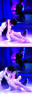 On SBS Kiss and Cry episode 3, F(x) Krystal with her partner, Lee Dong Hoon who is a professional figure skater delievered a very beautiful yet romantic storymovement on this event. They showed their ability by using a difficult movement which you could see it on the picture below. They spin so fast together and Lee Dong Hoon even lift Krystal body.