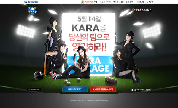 Popular Girl Group Kara's Cheering Card for baseball game 'MakuMaku'developed by Game Portal Net Marble (Rep. Nam Gunghun) service and Anipark (Rep. Kim HongGyu) will be released.