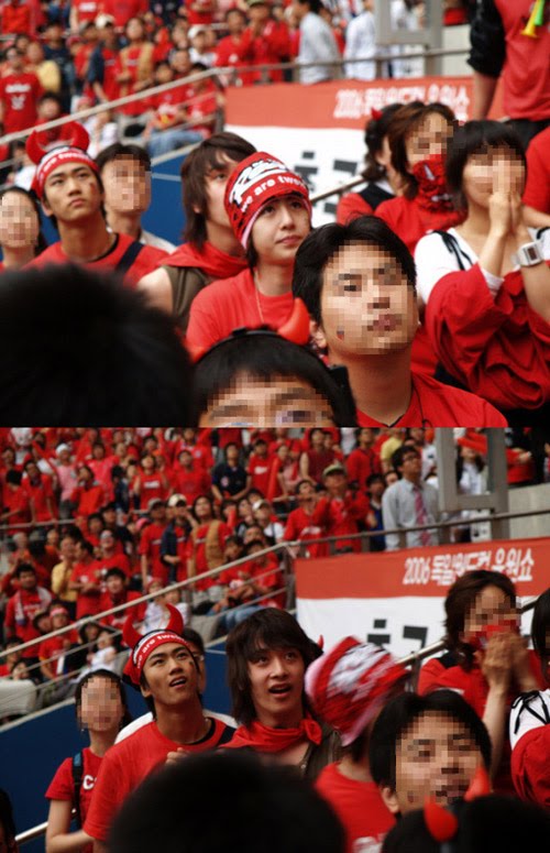Pictures of 2PM's Nichkhun, Taecyeon, and Chansung at the 2006 World Cup stadium has surfaced, attracting the attention of many netizens.