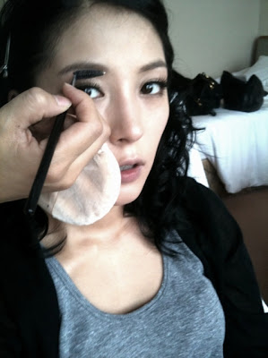 In the picture, BoA is putting on makeup before the concert. She shows off her beauty although her makeup is not complete.