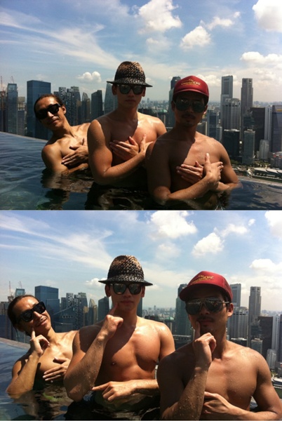 On his Twitter on the 4th at around 4pm, Rain posted two pictures with a comment saying, "The three of us are good jolly fellows."