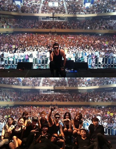 In those pictures, Rain is posing for pictures against the audience behind him. And Rain dressing entirely in black, has immediately caught the eyes of netizen with his charismatic charm.