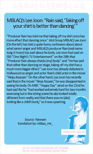 I think many fangirls of MBLAQ should thank Rain for asking Lee Joon to do so!
