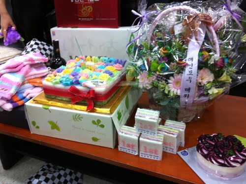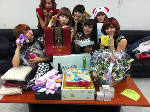 They celebrated their 1st anniversary since debut last 13th of November where they also had their farewell stage with their latest single "MACH". They were finished recording and went to their waiting room where the presents given from fans were waiting for them. Cakes of rainbow color, presents from rice cakes to flowers even health care products and socks were given to the members.