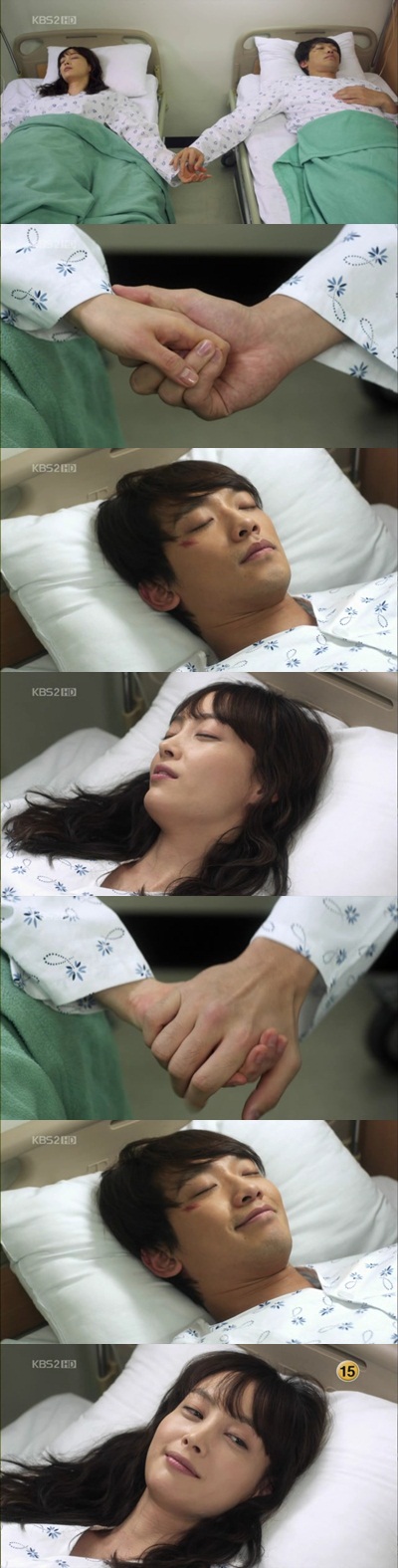 When 'Ji Woo' spelled words on her hand, "The gold bars are in danger", she answered back with the question using her fingers, "Why?". Following, 'Ji Woo' wrote on her hand again, "There'll be our ward rounds. I''ll act as a doctor, while you'll act as a nurse. Everything will be OK because I always stand by you in joy and sorrow."