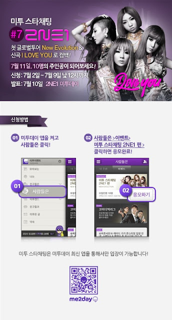 Me2day Star Chat event with 2NE1 will be held be on July 11. Ten lucky blackjacks will be able to chat live with the 2NE1 members. Registration for the event will open from July 2nd until the 9th.