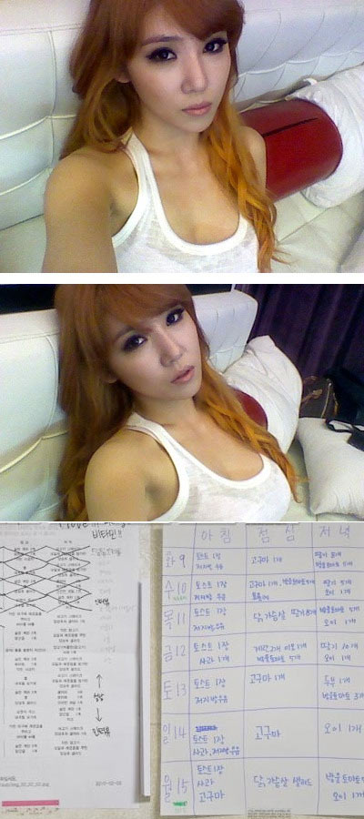 Recently, Secret revealed that they went on a diet before their comeback.In the pictures above, Secret's Zinger was posing and seen with a 'V' shape face and she revealed their diet meal.The menu consists of tofu,Cucumber and sweet potato !