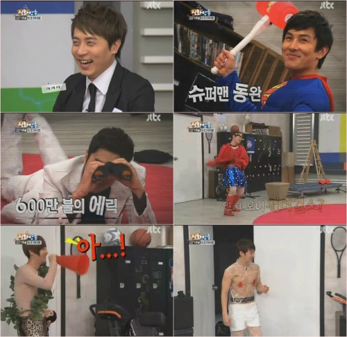 However, members who didn’t do too well in the game faced nothing but humiliation with their superheroes outfits. Lee Min Woo became one of the Wonder Girls, Shin Hye Sung became Tarzan while Jun Jin appeared as Invisible Man, wearing only shorts and a plastic sheet.