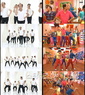 They imitated SNSD’s crab dance from ‘Gee’ perfectly, as they wore SNSD’s costumes with the original colors while Nakai Masahiro dressed up in old man’s clothes to suit the name ‘Showa Jidai’, which attracted a lot of attention.