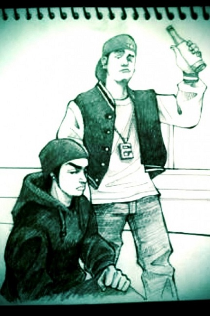 The photo shows a drawing of characters representing himself and E-Sens when they were keeping busy as a group.