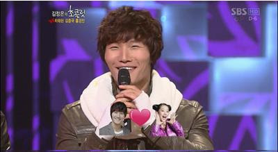 On SBS ‘Kim Jung Eun’s Chocolate,’ which was aired on the 6th, Kim Jong Kook was asked for his ideal type among the girl groups. Embarrassed, he answered, “f(x)’s Sulli.”