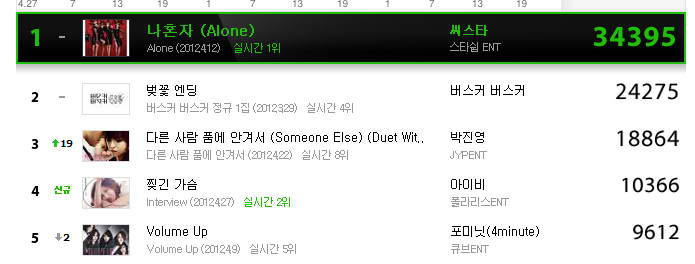 Instiz releases chart rankings for 5th week of April! It was SISTAR’s title track "Alone" that tops the chart for the 2nd time!