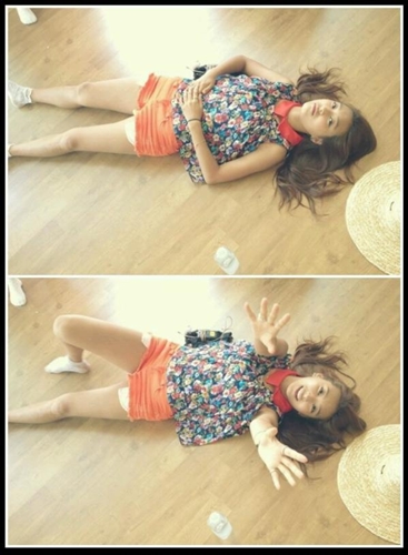 On the photo you can see Bora just simply lying on the floor wearing a floral top, shorts and socks and in one photo she gives a warm smile to the camera. Look's like she is struggling with keeping cool in the humid weather and decided to just lie down on the floor to cool off. Netizens commented, "She still looks cute", "She looks like she's uncomfortable with the heat", "We have to beat the heat! Bora fighting!".