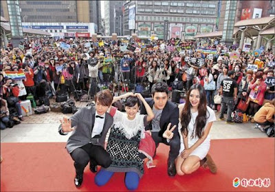 Super Junior's Siwon and Donghae came to Taiwan in order to promote FTV and GTV's Skip Beat, and was joined by Ivy Chen and Bianca Bai at the Taipei Train Station for a photobook-autograph event. After they had concluded the press conference on the previous night, they immediately recorded 7 (television) schedules. Because they heard that it might rain on the next day, they were worried that the fans would get wet in the rain, and the covers of the photobooks would be soaked, so they autographed all 1400 copies of the pre-ordered photobooks after returning to the hotel, and were only able to sleep at 5am.