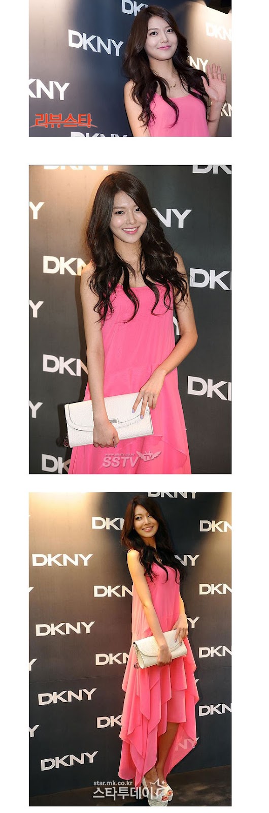 Recently, SNSD's Sooyoung attended the DKNY Seoul Spring/Summer fashion show and she turned heads left and right with her stunning appearance at the red carpet. Sooyoung appeared wearing a simple pink flowy gown wearing white peep toe pumps and white clutch bag.