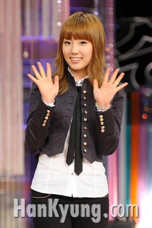 Netizens picked girl group SNSD Taeyeon for idol group member aegyo queen.