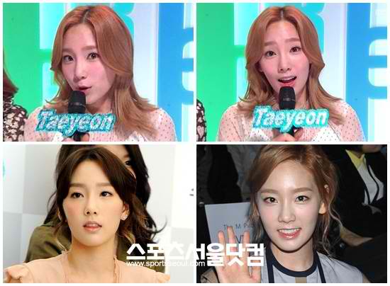 SNSD Taeyeon's face becomes a hot topic among netizens once again. On various online communities, several photo's of Taeyeon's appearance as an MC for the 14th of April episode of MBC "Music Core" was posted and compared to her previous appearances.