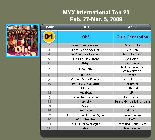 the photos above show the charts where SNSD's "Oh" topped the Hit as well as the International Charts of MYXPH.Besides,i still can see some old songs such as DBSK's Wrong Number and 4Minute's Hot Issues on the chart too.